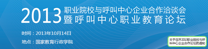 为贯彻落实《国务院办公厅关于进一步促进服务外包产业发展的复函》(国办函〔2013〕33号)和《教育部关于2013年深化教育领域综合改革的意见》(教改〔2013〕1号)的精神,推动职业院校的校企合作,完善社会化开放式服务外包人才培养体系,加大产业人才培养的支持力度,促进呼叫中心产业健康快速发展,中国职业技术教育学会对外合作与信息服务部定于2013年10月14日-16日在北京举办"2013职业教育与呼叫中心产业合作论坛"。